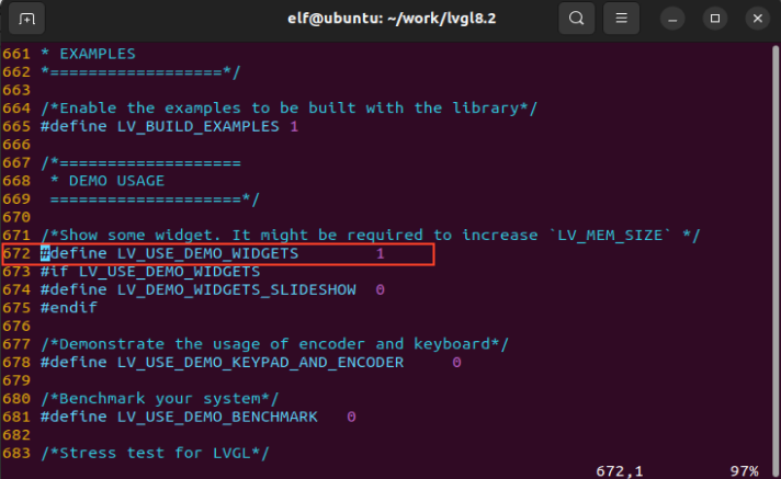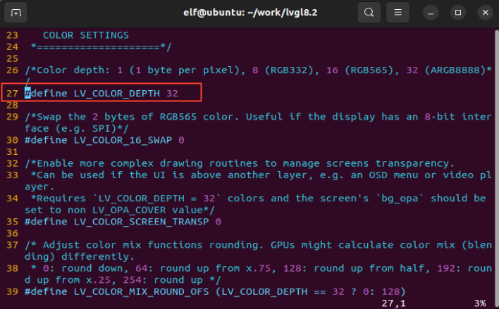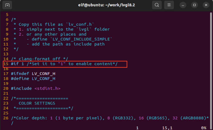 elf@ubuntu:~/work/lvgl8.2$ vi lv_port_linux_frame_buffer/lv_conf.h