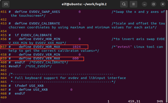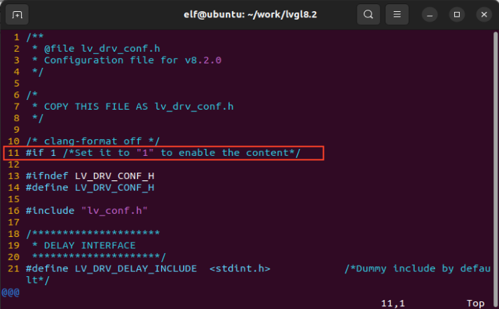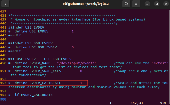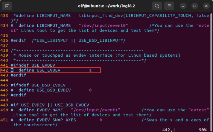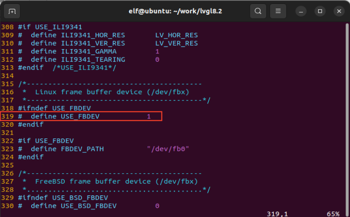 elf@ubuntu:~/work/lvgl8.2$ vi lv_port_linux_frame_buffer/lv_drv_conf.h